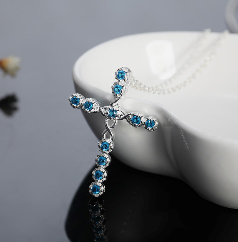 Hot Sale Silver Cyrstal Cross Pendant Necklace