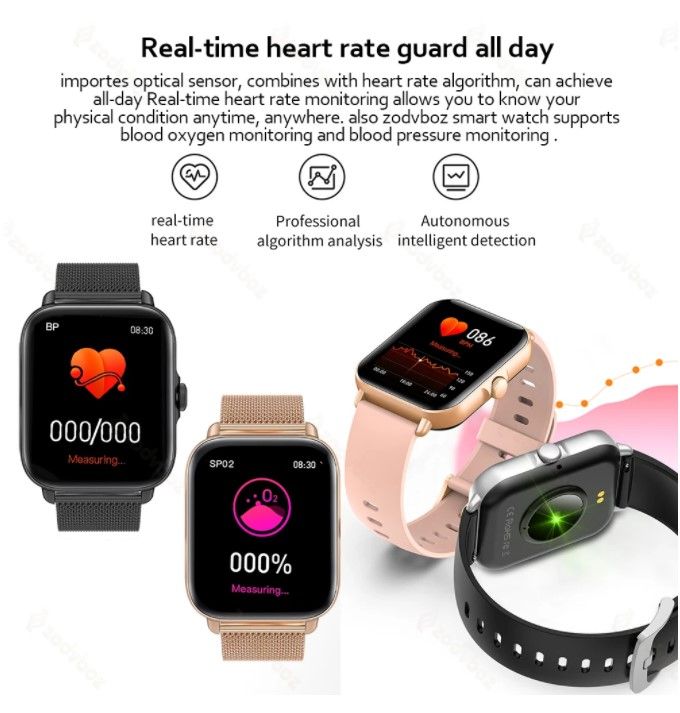 Function : Heart rate/Sleep monitoring/blood pressure/Blood oxygen/Multi-sports mode/Information and social information push/incoming call/Alarm clock/Sedentary reminder/Stopwatch/Find phone/Remote camera