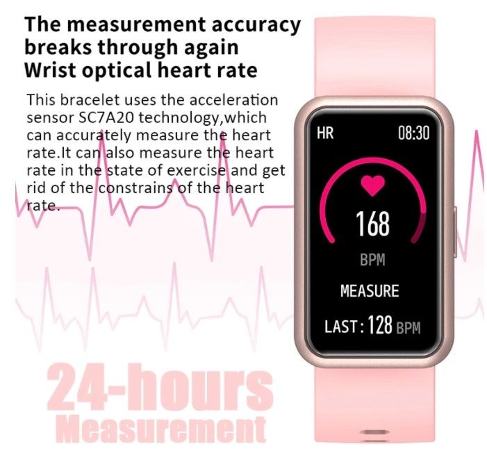 This bracelet uses the acceleration sensor SC7A20 technology, which can accurately measure the heart rate, and it can also measure the heart rate in the state of exercise, to get rid of the constraints of the heart rate.