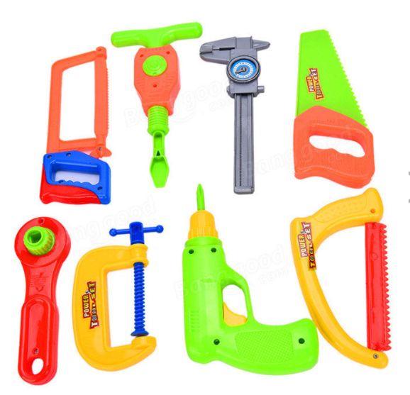 3.The play tools include hatchet, nipper pliers, claw hammer, saber saw, pliers, spanner and so on;