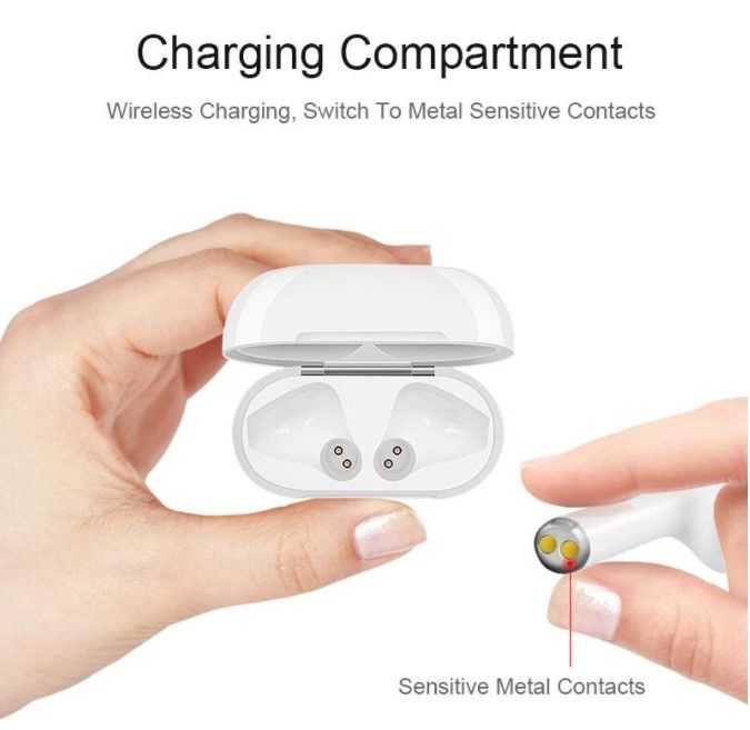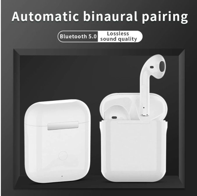 *Power on/off: Power on when pick out the earphone from the charging case. Power off when put the earphone back to the case . and start charging after press the charge button How to Use inpods: 1.Tap the charging case power on switch 2.Open the charging case and take off the earbuds, then eabuds auto-power on and pairing (important reminder, the condition of earbuds auto-power on is to turn on the switch of charging case) 3.Pair with the device: 1) turn on Bluetooth in the device 2) search i12 and connect to i12 Specification: 1. Driver: 15mm 2. Impedance: 9 OHM 3. Bluetooth version: Bluetooth 5.0 4. Output power: 40mW;Battery capacity 35MAH , charging box is 300mh . 5. Bluetooth distance: 10 meters 6. Frequency response: 20-20000Hz 7. Operating voltage range: 3.0V-4.2V 8. Powerful noise de-noising circuit (active noise reduction) 9. Charging time about 1-2 hours . 10. Talk time is about 2-3 hours (a pair of earphones use together ), music time about 2-3 hours (a pair of earphones use together ) , Charging box can charge for the earphones about 3-5 times. None of the above products come with a retail box, we pack it in safe bubble bag.