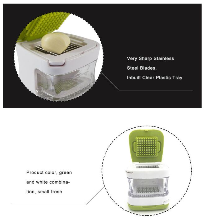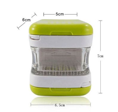 100% Brand New! Item Name: Multifunction Garlic Press Crusher Material: Stainless Steel, Eco Friendly Plastic Color: Green Size: 6.5 x 6.8 x 7.4 cm (2,5 x 2,6 x 7 inch) Weight: 170 g This utensil gives you the choice. Would you prefer your Garlic sliced or diced? It's your choice. This Garlic Crusher does both. Effortlessly cuts through even the toughest garlic, fruit, or vegetable. Takes almost no effort to push down the top and you've got sliced or diced garlic. One side slices, the other dices. Cleaning your Garlic Press is much easier than its traditional stainless steel cousin. No need to spend ages removing bits that are stuck in awkward places. This is a neutral green and white color. It fits in your drawer. It really doesn't take up too much space Package Content: 1 x Garlic Press Package Weight: 0.19kg (0.42lb.) Package Size: 7cm x 7cm x 7cm (2.76in x 2.76in x 2.76in)
