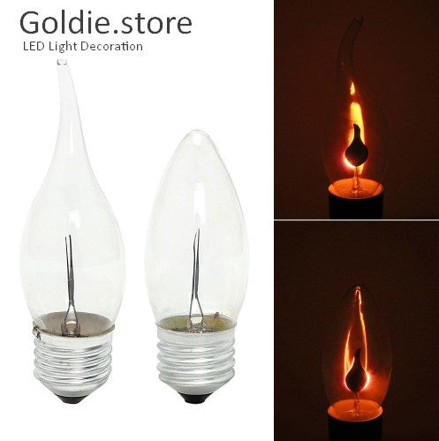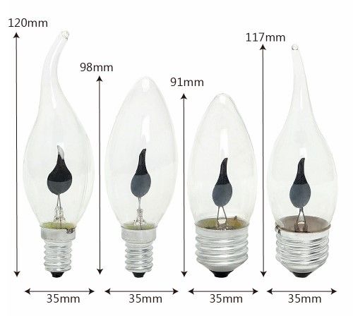 Features: Standard E27/E14 screw, very easy installation. Artificial vivid moving flame, but flameless. It gives a soft orange pulse to create a candle blowing in the wind. Safe and energy saving, only 3W, and with low heat generation. Innovative lighting, novel gifts for kids or friends, big surprise at birthday party as cosplay lights. Suitable for bedroom, living room, bar, hotel, night clubs, outdoor gardens, villas, wedding decorations, parties, etc. Specifications: Base: E14/E27 Material: Glass Shape: Flame/Candle Wattage: 3W Voltage: 220V Lighting Color: Orange Red Product Height: 9cm/ 10cm/ 11.5cm/ 12cm Package included: 1 x Edison Bulb