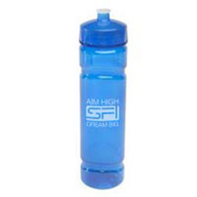Stay cool and hydrated while running, walking, or hiking with this blue 24-ounce sports bottle. Features the SFI logo and "Aim High Dream Big" motto on front. The pull-stopper on top of the bottle seals tight to keep your drink fresh and prevent leaks.