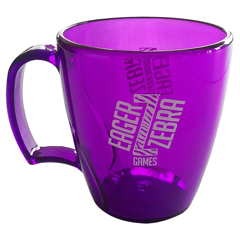 Drink your favorite beverage in style with this attractive Eager Zebra 10 oz. plastic mug. Purple with "Eager Zebra" and a zebra print "Z" on front. Dishwasher safe.