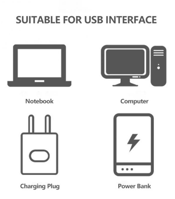 Powered by: Laptop,Desktop,Power Bank,Socket with USB,etc