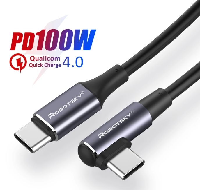 60W/100WType C to Type C Elbow Cable PD Fast Charging Cord for Samsung Huawei Mac Quick Charge 4.0 USB C to USB C Cable