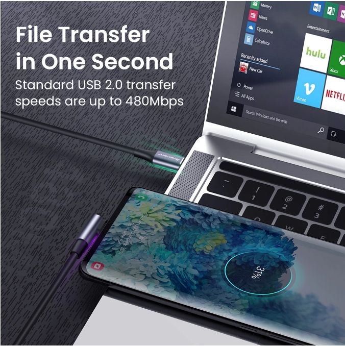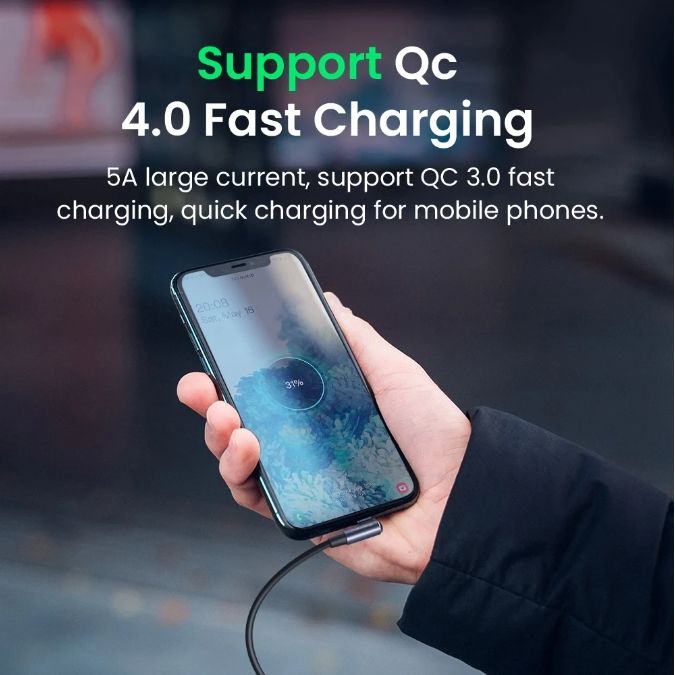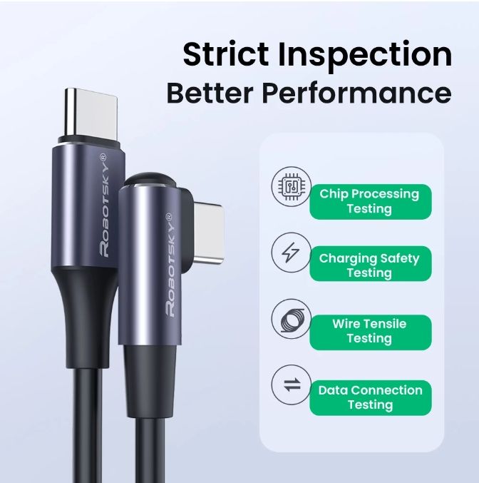 60W/100WType C to Type C Elbow Cable PD Fast Charging Cord for Samsung Huawei Mac Quick Charge 4.0 USB C to USB C Cable Interface: TYPE C to TYPE C Cable Core: 65/0.10TC*2C+16/0.08TC*4C, OD4.0 Material: Environmental protection PVC+Nylon braid materials Both ends of the terminal are nickel-plated, black, aluminum shell Convenient to play mobile phones and games on horizontal screen
