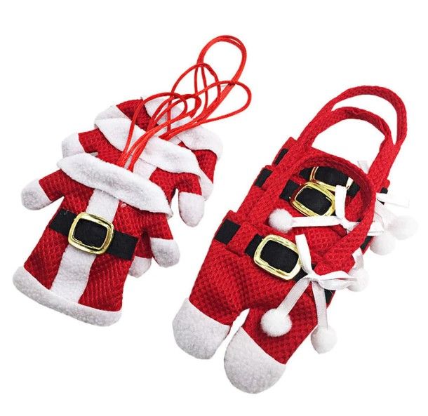 Coat Size:9cmX10cm Trousers Size:15cmX7cm Weight:80g Package included:6 Pcs Set of 6 colorful and charmingly detailed pockets. Includes 3 jackets and 3 pairs of pants that each hold a fork, knife and spoon. Polyester; imported. Spot clean.
