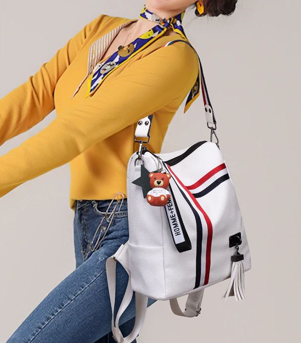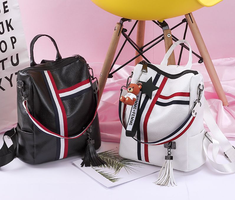 100% Brand New! Item Type: Backpack, Shoulder bag Backpacks Type: Soft back Main Material: PU Leather Lining Material: Polyester Gender: Women Decoration: Tassel, Cute Pendant Capacity: 20-35 Liter Closure Type: Zipper Interior: Interior Zipper Pocket, Cell Phone Pocket Technics: Jacquard Handle/Strap Type: Soft Handle Style: Fashion Exterior: Silt Pocket Pattern Type: Solid Size: 31 x 27 x 13cm (12,2" x 10,6" x 5") Color: Black, White Package Content: 1 X Shoulder Bag Package Weight: 0.6kg (1.32lb.) Package Size: 30cm x 20cm x 10cm (11.81in x 7.87in x 3.94in)
