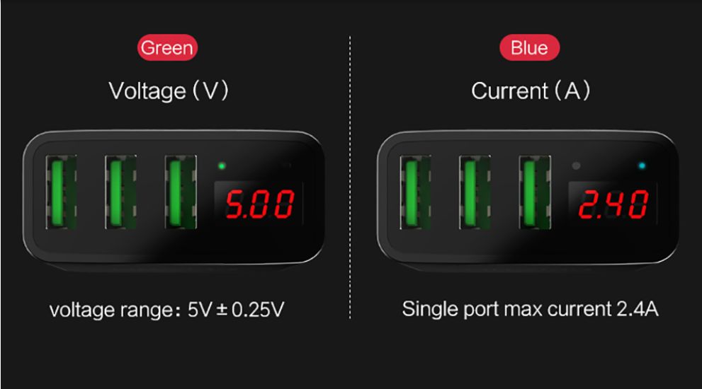 2.The 3 USB totel max current is 3A(Normally if you only use one port, it can reach max 2.4A, but your phone need support 2.4A charge)