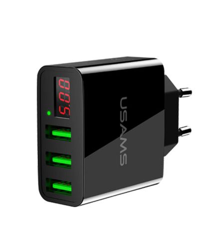 1.This is Smart charger it can identify your device and distribute different current.Fashion Design, Unique Shape. 2.The 3 USB totel max current is 3A(Normally if you only use one port, it can reach max 2.4A, but your phone need support 2.4A charge) 3.The differernt charging period will has a different charging current. Please kindly understand. Compatible devices:For iPhone 7 / 7plus / 6 / 6s / 6s plus / 6plus / 5 / 5s / 4 / 4s For Samsung Galaxy S8 /S8 plus S7 / S6 / S6 Edge, Samsung Galaxy S5, S4, S3, S2, Galaxy Note 2, 3 For Xiaomi M3 / M2 / MX5 Pro / M2 Note / Pro 6 / Note 3 / Note 4 / Mix / Note 5s For Huawei P10/P9 / P9 Plus / P8 / P8 Max / Mate 7 / Ascend P6 / Ascend P7/ Ascend P8 For Almost all mobile phones General Specification: Brand: USAMS Model: US-CC035 USB Port: 3 Plug: EU Product Weight: 60g Dimensions: 88mm*51mm*23mm Color: Black Technical Parameters: Total Power: 15W Input: 100-240V Output: 5V 3.0A(MAX) Certification: CE FCC RoHS Material: Fireproof PC Feature: LED screen display Protection: Insert Smart Circuit, Smart Identification Package Included: 1* USAMS US-CC035 EU Wall Charger Ships in 7 business days. It is shipped from China. Delivery is provided by China Post Air Mail. Delivery time depends on the couriers, local customs in your country also holidays, weather conditions. Usually it takes from 39 to 60 days, depending on the customs at your country.
