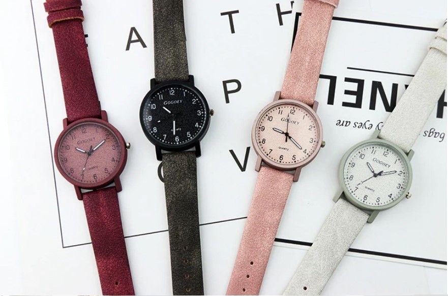 Brand:Gogoey Watches categories:Women Watch style:fashion casual luxury bracelet Shape of the dial:Round Movement type:Quartz Display type:Pointer Watch Band: Band materal:Leather Clasp type:Pin buckle Size and weight: band lenght: 25 cm Dial diameter: 3.5 cm Dial thickness:0.88cm Band width: 1.8 cm Watch weight:28.6 g Package: 1X watch Waterproof description (life waterproof ),only can splash a little water, can't be washed or in bathing,swimming,diving.