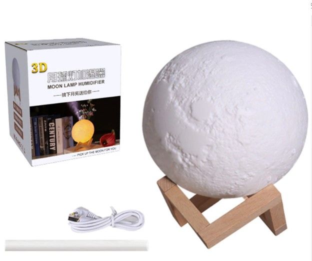 Moon lamp made with 3D printing technology, realistic full moon shape, the surface of the moon lamp is very close to the lunar moon, novelty and charming Long and large spraying duration and range 880MLL big capacity. Quiet working sounds - two adjustment levels for the mist, satisfied for your need; working noise is lower than 35db, is really a mute mode humidifier. All these function just for your convenient. One humidifier, more function and more CONVENIENT. add water when you are enjoying your free time. suitable for small and medium sized room. Dreamlike and creative decorative lights, perfect decorative lights or gift for Christmas, thanksgiving, birthdays, party, wedding, anniversary, lover, kids, children bedroom, living room, dinning room and outdoor decoration, a favorite gift for your. Product Details Product Name Lunar Light Humidifier Material PVC/PP+ electronic components Product size: 13 cm in diameter Product packaging : 140*140*160mm Single net weight / gross weight 400g / 310g (245g without bracket) Color: White Input voltage: DC5V Power consumption: 2W Spray volume: 25-35ML Water tank capacity: 880ML Spray duration: 25-35ML Products include: Humidifier*1 USB cable*1 Instructions*1 Cotton swab *2 Wood stand *1