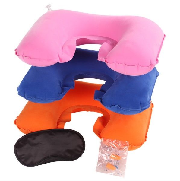 Specifications: Material: Flocking Pillow, Polyester Eye cover, Rubber Earplugs Weight: 45g Size: Pillow size: 44 X 26.5 cm/17.32 X 10.43 in Applications: Home, office, travel Color random Instructions: First, when you blowing up or deflated flat gas nozzle, pinch the mouth at the bottom of the gap will naturally open for gas flow in and out. If the air pillow is a thin film valve air nozzle, just blow into the tube 2 cm, and then inflatable can be. Second, the deflated when the travel pillow flat on the desktop, one hand pinch flat mouth, the other hand flat travel pillow deflated, pressure in the end after it will be folded, continue to flatten with the palm of your hand deflated. If the air pillow is a thin film valve air nozzle, the pipe into the 8 cm, the gas will naturally flow out. Third, the use of earplugs: The earpick pinched as thin strips, stuffed ears, to be slowly inflated, while hand caress earplugs bottom. Note: 1.Please allow 1-3 cm differs due to manual measurement. 2.Due to the different display and different light, the picture may not show the actual color of the item. Thanks for your understanding. Package include: 1 X Flocking inflatable pillow 1 X Eye cover 2 X Earplugs