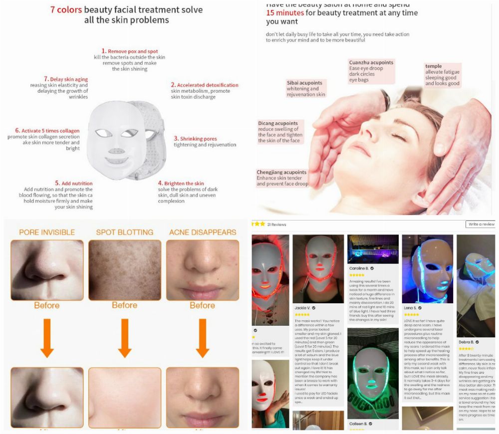 2. LED beauty mask effect: whitening skin, shrink pores, increase collagen, increase skin luster and elasticity, anti-aging, firm skin, improve dark circles, eye bags, fine lines, dilute dark spots and dry spots, promote wound healing, Improve oily pox skin, inhibit acne to remove acne, wound bacteria, improve skin allergies, redness and blood, accelerate the absorption of skin care products, and improve sleep quality.