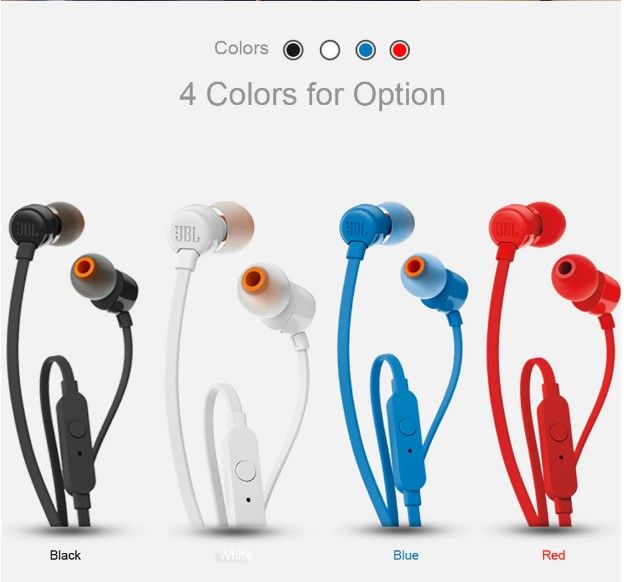 Music is a super companion for humans, which can make you relaxing and enjoy colorful life. JBL T110 Headphone is specially designed for music lovers, which is characterized by 9mm dynamic driver, built-in microphone & speaker, hands-free function and lightweight design. It is a super companion for you during daily life and travel. Features: [Pure Bass Sound] 9mm dynamic driver provides crystal-clear sound and enhance bass with excellent depth and detail resolution. [One Button Remote] One button remote control, easy to control music and calls. 1.1m tangle-free cord, durable and flexible to use. [Hands-free Calls] Built-in high-grade Microphone sets your hands free from answering and ending calls during exercise & travel. [Comfortable to Wear] The in-ear headphone with three sizes of silicone eartips ensure long-wearing comfort and outstanding sound isolation. [Strong Compatibility] 3.5mm Wired Headphones is compatible with most 3.5mm audio devices. No need to worry about running out of power. Specifications: Brand Name: JBL Model Number: T110 Type: In-ear Dynamic Unit Diameter: 9mm Sensitivity: 96dB Frequency response: 20Hz-22KHz Impedance: 16ohm Plug Type: 3.5mm Cable Length: Approx. 1.1m / 3.65ft Microphone: Yes Line Control: One button remote Color: Black, White, Blue, Red (Optional) Headphone Weight: 12.7g / 0.45oz Package Size: 15.0 * 6.0 * 3.0cm / 5.90 * 2.36 * 1.18in Package Weight: 52g / 1.84oz Package List: 1 * Headphones 2 * Pairs of Earcaps