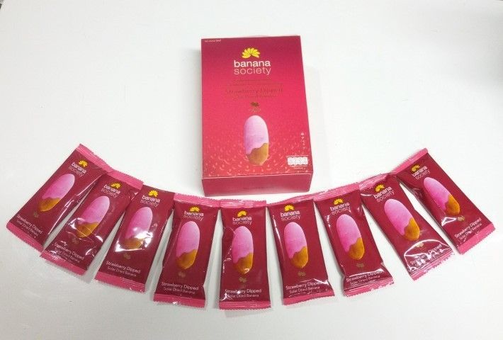 Strawberry Dipped Solar Dried Banana Dried in a control glass parabolic dome environment and certified to international hygiene standard. All our Dried Banana Products have No artificial flavoring and coloring: natural sweetness from premium bananas. No Sugar Added Chewy Soft Fruit Thai Snacks. "Banana Society" is the first innovation of dried banana of its kind in Thailand. Developed from traditional production of dried bananas in Bagkratum District, Pitsanuloke Province. But now with modern manufacturing systems and standardized Parabola Drying Techniques. This adds value and improved products for consumers. The objective, to preserve environment and create internationally accepted quality. Banana Society shifted the production to drying in Parabola Domes. This was developed by the Department of Food Technology, Faculty of Engineering and Department of Physics, Faculty of Science, Silpakorn University with support from Industrial Technology Assistance Program and The Thailand Research Fund. Parabola Dome can control temperature, moisture and drying period resulting in spotless, smooth color, tasty and larger size of dried bananas.