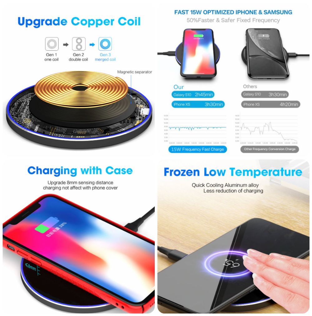 【Independent Large Coil】Built-in upgraded indepent large coil that made of high-purity copper, along with smart chip, this charger will provide larger charging area and higher efficiency.
