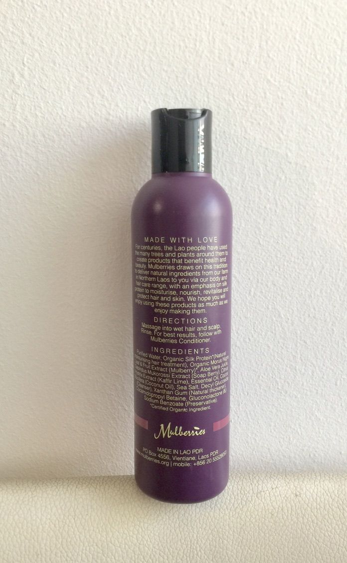 All Natural Silk Protein Shampoo is made with love by Lao people. Silk protein moisturise, nourish, revitalise and protect hair and scalp. It is made from organic silk protein, organic morus nigra leaf and fruit extract(mulberry).