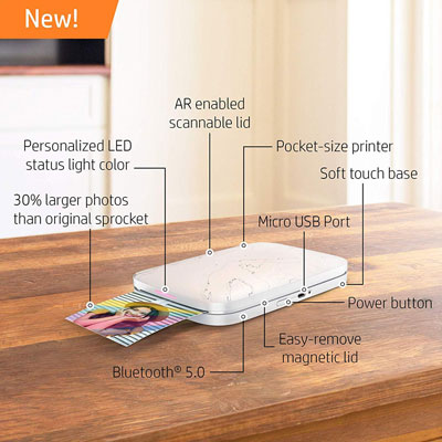 * Print 30% larger photos in an instant – connect with the HP Sprocket app using Bluetooth, and quickly print photos 30% larger than those of the original HP sprocket.