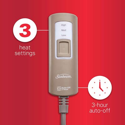 Curl up and relax, enveloped in the cozy warmth of this Sunbeam Heated Throw Blanket. Soft and cuddly plush RoyalMink on one side and cuddly sherpa fabric on the other fends off winter chills, while the Thermofine warming system senses and adjusts to deliver consistent warmth for hours. The blanket's EliteStyle II Controller includes 3-heat settings and a 3-hour auto off for safety. An exclusive wiring system senses and auto-adjusts throughout the throw for the ultimate cozy experience. Measures 50" x 60", plugs into standard 110-120 volt wall outlets; machine washable and dryer safe.