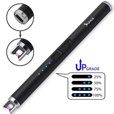 I was pleasantly surprised by the SUPRUS Electric-arc Lighter. It is rechargeable which means you do not have to change batteries. The ark is concealed until you need to us it so there is not much of a chance of accidentally igniting. It is long and slender so you can light wicks in tall candles. Very good product!