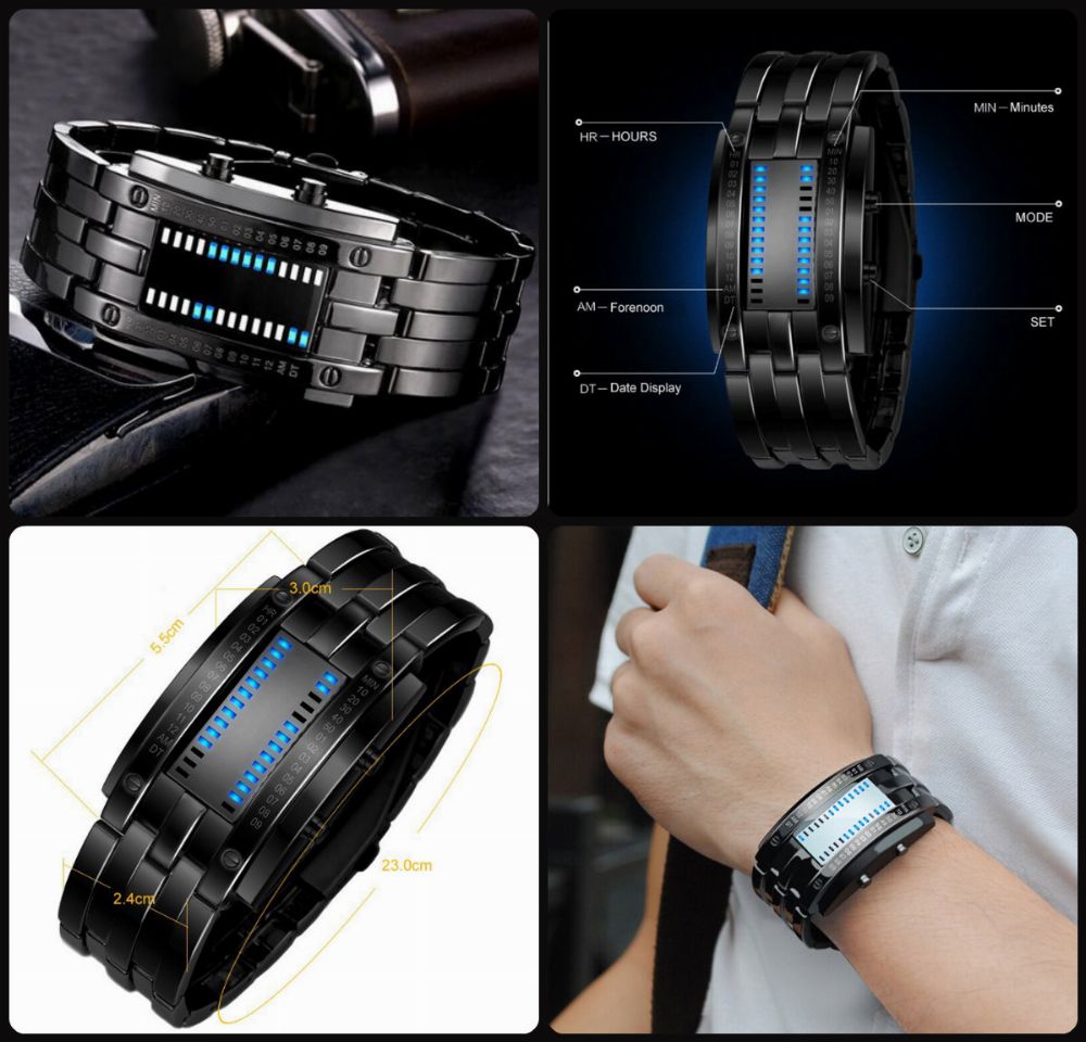 Luxury Fashion Stainless Steel LED Blue Binary Watches