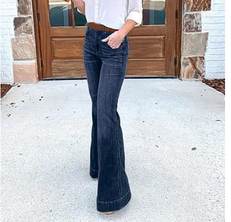Features:Retro,Slim fit stretchy skinny bell bottom jeans with High waist Denim destroyed Zipper closure Skinny Long pants Color - 2 Colors : blue,black Material:Coton/Polyester Occasion: Suit for all occasions such as casual, work, party, club, etc Care Instruction: Hand wash Cold,Hang or Line Dry Package Contents: 1 X pants
