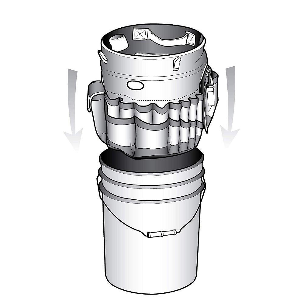 The world’s first bucket organizer, the original Bucket Boss. Fits any 5 gallon bucket, providing instant organization with 30 pockets for tools and 3 interior loops for hammers and pry bars, all while keeping the bucket center open for bulk storage. Made of durable 600 denier poly ripstop fabric.