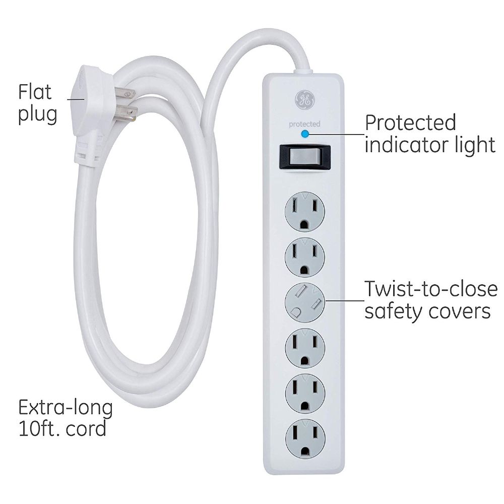 Expand your power – This GE 6 outlet surge protector with 10-foot cord provides power for your home and office electronics