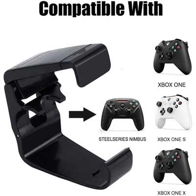 Quickly boost your smartphone gaming to a higher, funner level with this Customized Controller Foldable Mobile Phone Cli. Featuring a perfect fit for Microsoft Xbox One/Xbox One S/Xbox One X, and Steel series Nimbus Wireless Controllers, the clip easily connects your controller and smartphone without any tools needed. The clip's telescopic design supports mobile phones with widths up to 3.5 inches and a 160-degree adjustable viewing angle. Small and foldable, this clip fits nicely in your pocket, bag, or suitcase for a better gaming experience wherever you go. Includes two free rainbow thumb grips.