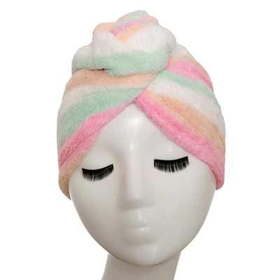 Wrap your head in thick, plush luxury with a Microfiber Quick Drying Hair Towel Wrap. Made from high quality microfiber, coral fleece, this silky soft hair wrap measures 26 3/4" x 10 1/4" (68 x 26 cm) and is perfect for any hair length. Each towel is more durable than regular cotton towels and dries your hair quickly without damaging hair or losing moisture. Great for the bath, after-shower facemasks, daily face washing, makeup application, and more, the ultra-lightweight hair wrap is convenient, versatile, and ideal for the gym and traveling. Each towel includes a loop and secured button for a great fit. Machine washable; one size fits most. Available in blue, khaki, lilac, or rainbow.