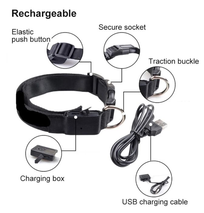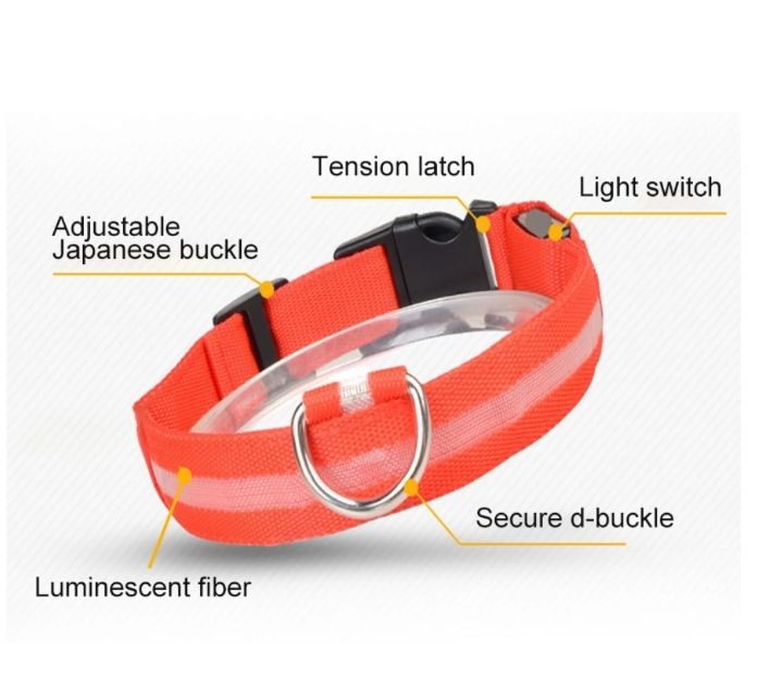 Feature: Three flash Mode First Click_Quick Flash Second Click_Slow Flash Third Click_Steady Light Dog Cat Night Safety Flashing Luminous Led Light Adjustable Puppy Collar Pet Collar Supplies Specifications: Shinning in the dark makes your lovely pet very unique. This is an excellent way to ensure both you and your pet's safety in dark. Adjustable buckle and hand grip webbing make the collar durable and comfortable for your loved pets. Type: Pet Collar Gender: Unisex Fit for: Dog, Cat, Pet Material: Nylon, LED Light Bar Flash Modes: Fast, Slow, Constant Features: Adjustable, Water Resistant, Glowing Width: 2.5cm/0.98" (Approx.) Size: on picture (S, M, L, XL) Notes: Due to the light and screen setting difference, the item's color may be slightly different from the pictures. Please allow slight dimension difference due to different manual measurement. Package Includes: 1 x USB Rechargeable Pet Collar