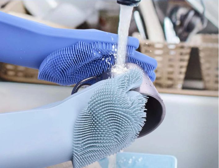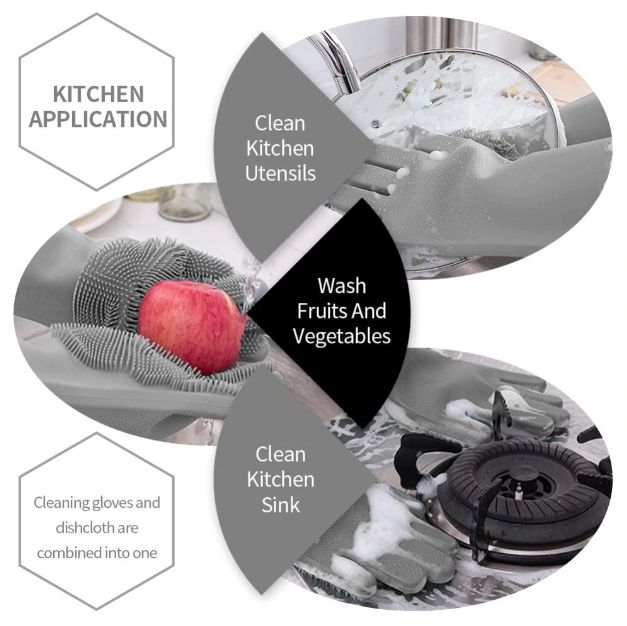 100% Brand New! Features: Unlike typical low-durable rubber gloves out there, this can be used semi permanently. Soft, strong, and highly flexible. Great for cleaning the bath, car or blankets as well! One size fits all, however, if your hands are extra-thick, might be too tight. Specifications: This soft Dish washing Gloves is made of high-quality and environment food grade silicone. Super Easy to Clean! Restrains Germs! Can be Sterilized in Boiled water, Microwave or Dishwasher. Easier to use and clean: use this silicone brush to replace your old style brush for improving kitchen hygiene. Super easy to clean the brush, just rinse with water or put it in the dishwasher, it will has no residue. Material: 100% Food Grade Silicon Size: 35 x 15 cm (13.8 x 6 inch) Color: Blue, Green, Gray, Pink, Purple Package Included: 1 Pair of Silicon Dish Scrubber Gloves