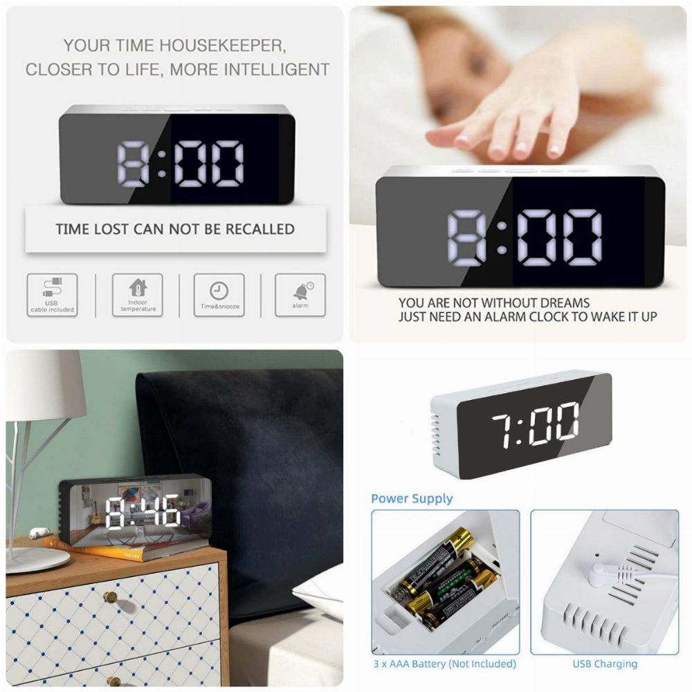 *Mirror LED Digital Alarm Clock is multi-functional:Alarm clock,Temperature display,LED nigh light function,Make up mirror.