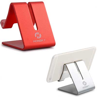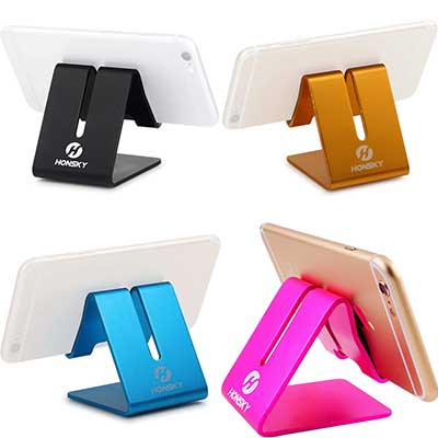 Pair your phone, tablet, or e-reader with the Universal Aluminum Smartphone Holder for easy hands-free reading, video watching, texting, and more. In addition to a clean, attractive design, this portable holder features a durable aluminum alloy construction, bottom anti-slip washers for a stable feel, and supports both horizontal and vertical viewing for any device measuring up to 10 inches. Comes in a variety of colors to suit any taste.