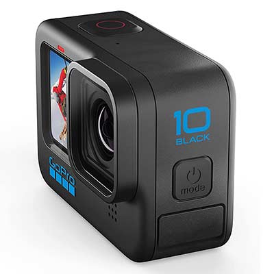 Meet the GoPro HERO10 Waterproof Action Camera, the perfect camera for all your adventures big and small! With its powerful new GP2 engine—the fastest of any GoPro—the HERO10 is built tough, totally waterproof, and ready for any adventure. The HERO10 takes beautiful, vibrant 23MP photos in fine detail, with realistic textures and stunning contrast, even in low light, thanks in part to a new water-shedding hydrophobic lens cover that repels water while helping to eliminate lens flare and other artifacts. HyperSmooth 4.0 video stabilization eliminates shaky footage and super sharp 5.3K video resolution at 60fps delivers DOUBLE the frame rate over previous models, resulting in amazingly smooth motion with 15.8MP still photos that look amazing! What's more, transferring photos and videos from your cloud-connected GoPro to your phone is simple and versatile, with your choice of effortless wireless upload via the Quik app or a lightning-fast wired connection via USB. There’s also unlimited cloud storage with hassle-free auto upload. Just plug in your camera when connected to your home Wi-Fi and the camera does the rest!