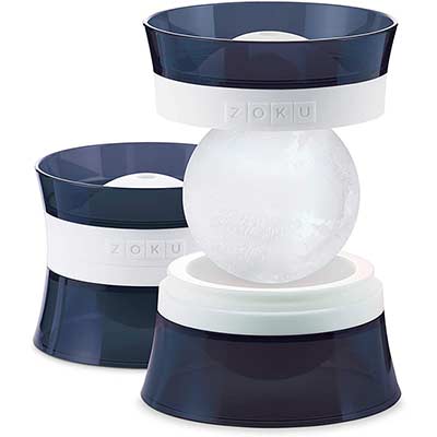 Create spherical ice for chilling and garnishing cocktails, water, iced tea and other refreshments with Zoku Silicone Ice Sphere Molds (set of 2). The uniform balls of ice melt slowly and evenly to keep drinks colder longer with less dilution. Easy to use, the silicone molds invert so you can easily remove the ice sphere without having to rinse under water. Just pull the halves apart, flip over the mold, and push on the bottom of the mold to release a perfect 2-1/2" diameter ice ball. BPA and Phthalate-Free, the ice molds are dishwasher safe and stack for easy storage.