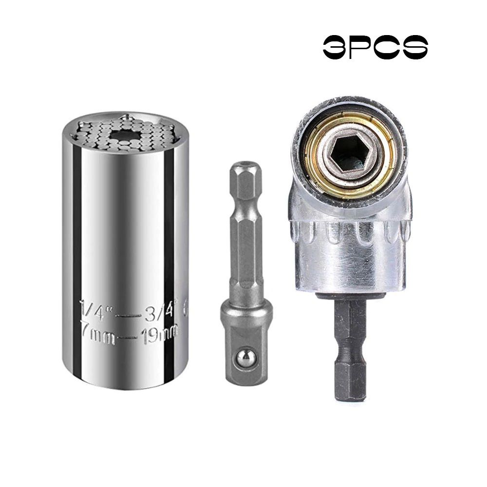 7mm-19mm Universal Socket Grip Ratchet Wrench Power Drill Adapter & 105 Degree Right Angle Driver