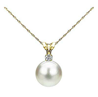 Combining artful design with timeless fashion, this stunning 14k Gold White Cultured Freshwater Pearl & Diamond Pendant Necklace makes a perfect gift for any occasion! This gorgeous piece features a perfectly-proportioned 7-7.5 millimeter freshwater lustrous cultured white pearl accented by a prong-set .01 carat brilliant cut diamond—all on a V-shaped solid 14 karat gold bail. The pendant is strung on an 18-inch long twisted link chain with a spring ring clasp in lead- and nickel-free 14Kt gold that's safe for safe for sensitive skin. Includes a Certificate of Authenticity detailing the pearls’ heritage and excellent quality. Available only in white gold option.