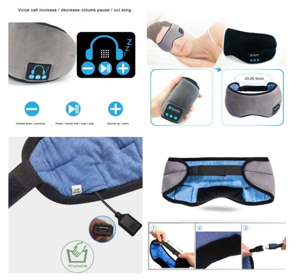 Shut out the noise and light and rest peacefully and easily with your favorite music, audio book, or ambient noise using the Sleep Mask with Built-In Bluetooth Headphones.