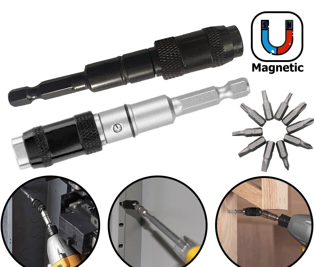 1/4" Non Magnetic Screw Drill Tip Drill Screw Tool Quick Change Locking Bit Holder Features: - Very durable, convenient to use. - Fast fastening, greatly improve work efficiency. - Suitable for drill, screwdriver, batch head and other to transfer. - It has a 20° pivot mode that allows perfect accessibility to tight spaces and hard to reach areas. - It perfectly holds on to screws without the worry of falling off for an easier and more convenient installation. Specifications: Bit tip holder: 1/4″ Material: Carbon steel Package included: 1 x Magnetic Screw Drill Tip Notes: 1. Manual measuring, please allow 1 ~ 3mm error,thank you. 2. Due to the difference between different monitors, the picture may not reflect the actual color of the item. We guarantee the style is the same as shown in the picture.