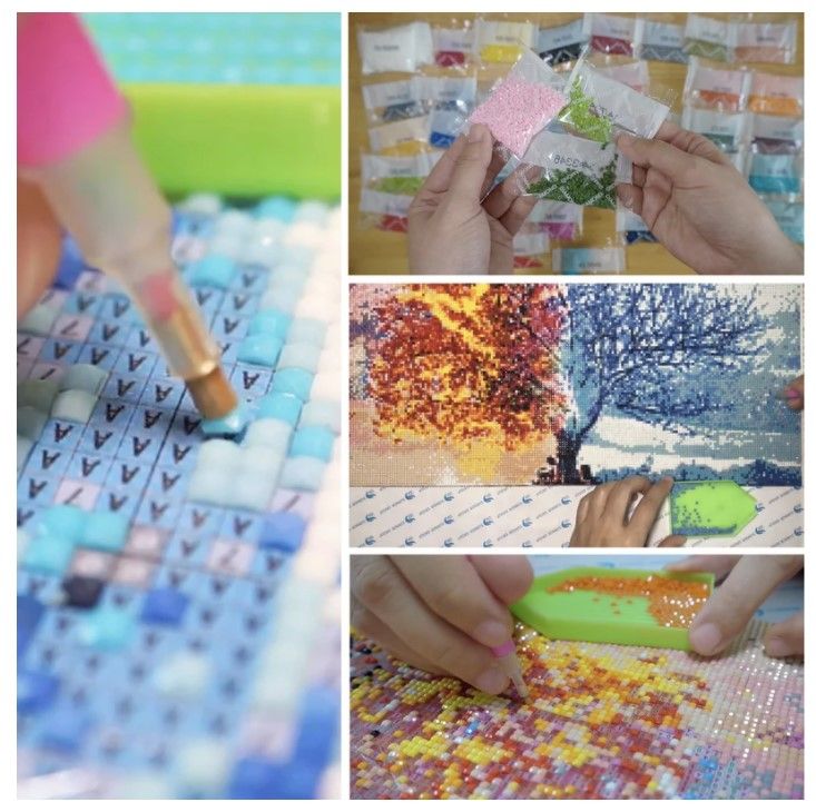 Diamond embroidery full set (colorful diamonds, point drill pen, drill tray, wax)