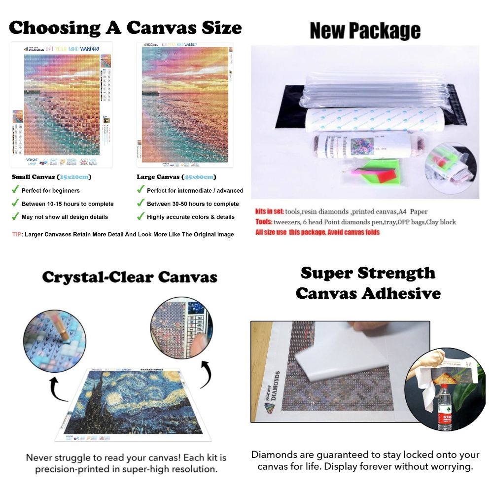Feel the stress melt away as you complete your very own work of Diamond Art, one "diamond" at a time! This gorgeous Full Drill Diamond Painting Kit is entitled "Rainbow Beach" and includes a premium toolkit with your choice of Square or Round Diamonds. Choose a larger size (at least 40cm across) to guarantee the best result. Feature: Full Square/Round diamond painting Application: home/hotel/office decoration & gift Material: Square/Round Resin Diamond Package Include: Diamond embroidery full set (colorful diamonds, point drill pen, drill tray, wax) FRAME IS NOT INCLUDED! This item ships from China - please allow 4-10 weeks for delivery, excluding processing. Due to COVID-19, delivery may be further delayed. Shipped by China Post via local carriers (eg USPS). Check your email after purchase for details.