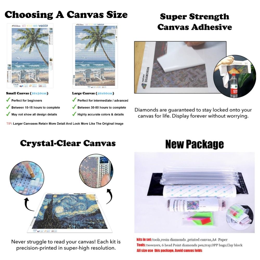 Feel the satisfaction of watching your Diamond Painting come together before your very eyes. This gorgeous artwork is now available and includes a premium toolkit with your choice of Square or Round Diamonds.