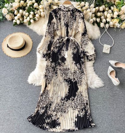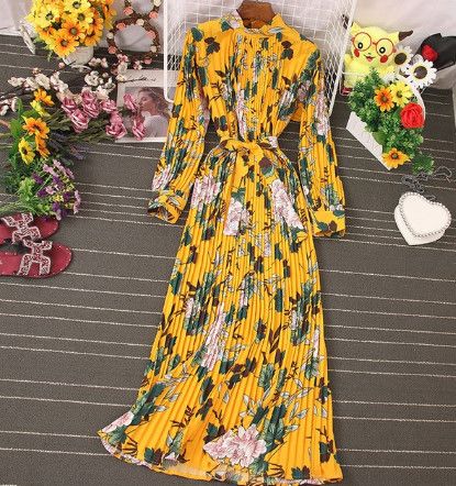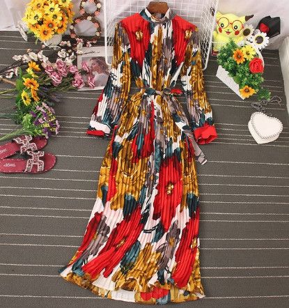 eason: Spring/Autumn Neckline: Turtleneck Sleeve Style: Regular Decoration: Sashes Style: Office Lady Dresses Length: Ankle-Length Material: Polyester/Coton Silhouette: A-LINEA Sleeve Length(cm): Full Gender: WOMEN Waistline: empire Pattern Type: Print Size:One size Shoulder:38CM Sleeve:48CM Bust:96-126CM Length:126CM