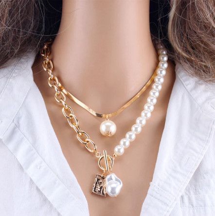Fashion Chain Pearl Necklace For Women Baroque Pearl Pendant Necklaces Choker Neck Snake Chain Gold Silver Color Collier Jewelry