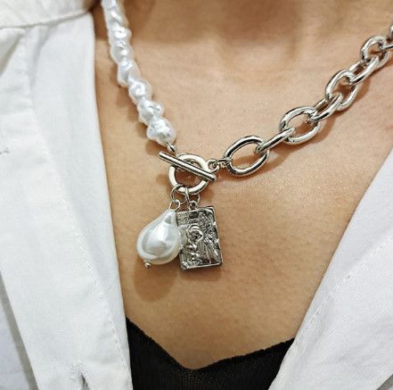 Fashion Chain Pearl Necklace For Women Baroque Pearl Pendant Necklaces Choker Neck Snake Chain Gold Silver Color Collier Jewelry