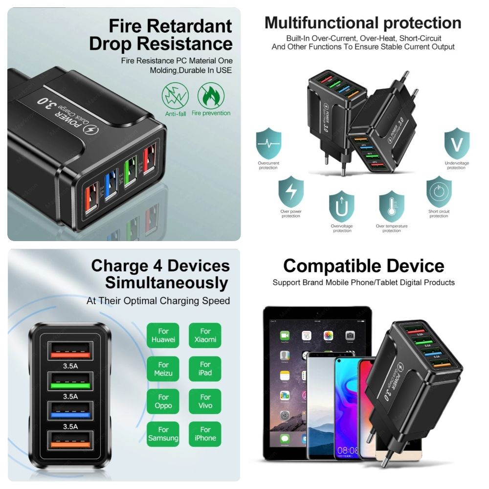 5.1A 4 USB Fast Charger Quick Charge 4.0 3.0 Universal Wall For iPhone 12 11 Samsung Xiaomi Mobile Phone Chargers Fast Charging Max. Output Power: 45W Quality Certification: CCC Applied Fast Charge Protocols: Other Origin: CN(Origin) Output Interface: USB Output Interface: 4 A Ports Type: Travel Power Source: A.C. Source Display screen: No Certification: NONE Model Number: usb charger Feature 1: Quick Charge 3.0 Feature 2: Fast Charging Wall Charger Feature 3: For iPhone Samsung Xiaomi Huawei Feature 4: Charger Adapter Feature 5: 4 USB Charger Feature 6: Universal Mobile Phone USB Charger Feature 7: USB charger/Travel charger/Wall charger Feature 8: EU Plug Charger/ UK Plug Charger Feature 9: Fast Charger for Xiaomi mi 9 Redmi note 8 7 4x Feature 10: usb charger for iPhone 12 pro 11 max x xs 8 7 Feature 11: magnetic charger For Samsung A50 A70 J3 J7 Feature 12: fast quick charge 3.0 for Huawei P40 Lite P30 Pro
